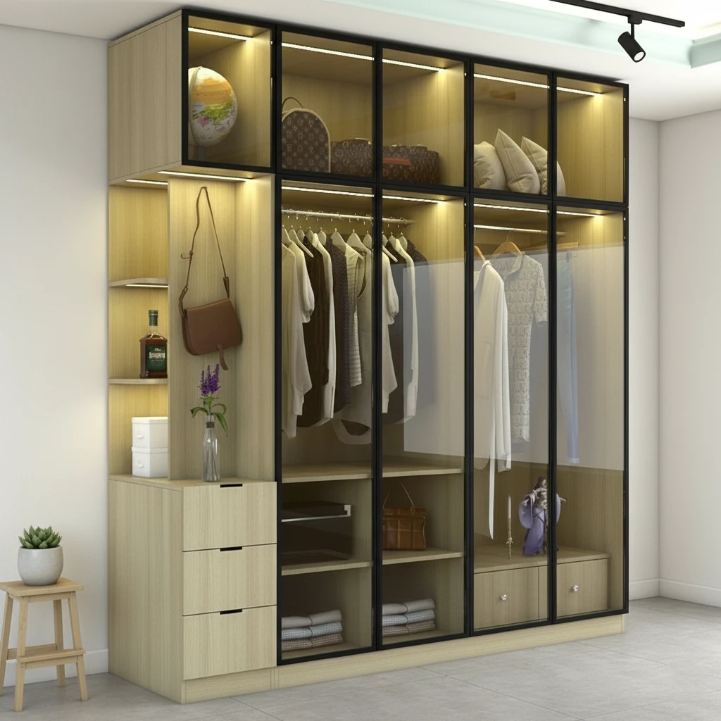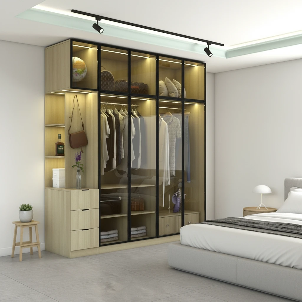 Trưng bày thông minh: Biến tủ quần áo thành một "showroom" thu nhỏ, cho phép bạn trưng bày những bộ trang phục yêu thích, túi xách hàng hiệu hay phụ kiện đắt giá.
